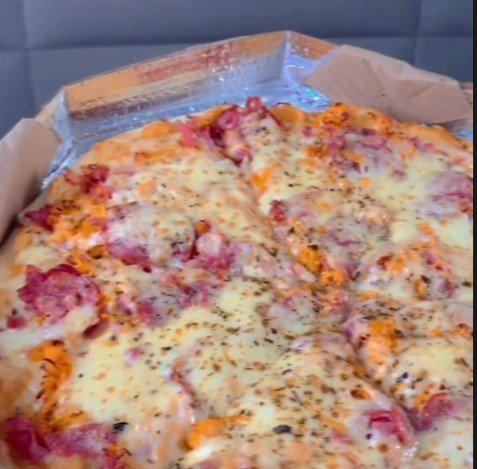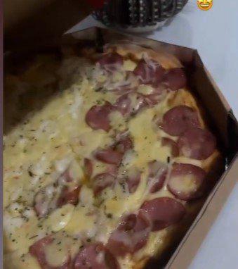 A pizza fresquinha, saborosa, chegou rapidamente e estava quentinha!